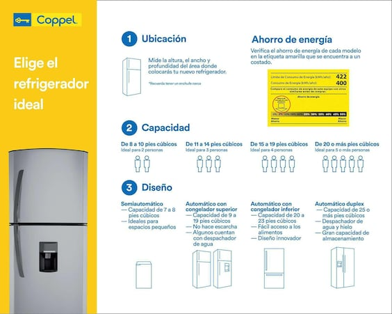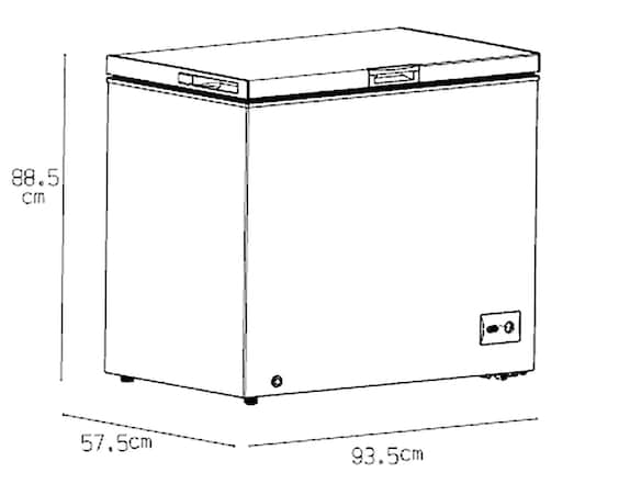 Su capacidad es de 7 pies y está hecho a base de acero inoxidable. Es de color gris con blanco y tiene control de mando manual, a través de perillas. Sus medidas son 93.5 x 57.5 x 88.5 cm.