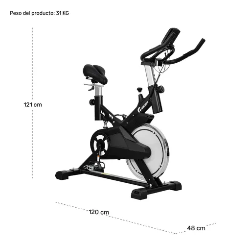 - Estructura de metal, diseñada para uso prolongado. Cuenta con porta celular en el manubrio, ideal para conectar dispositivos o escuchar música; asiento y volante de resistencia ajustables.