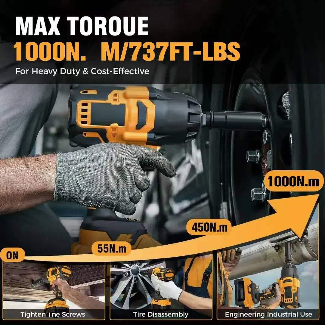 【Alta potencia de torque】: Con un torque de hasta 1000 N.m, esta llave de impacto ofrece una potencia superior para trabajos exigentes.