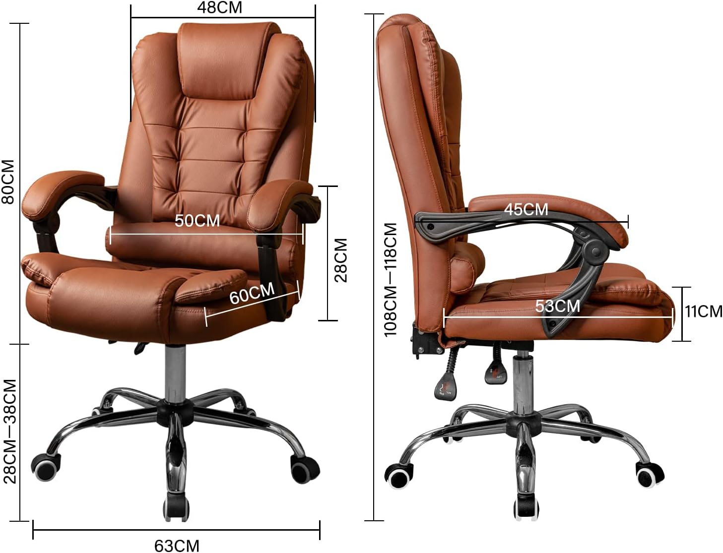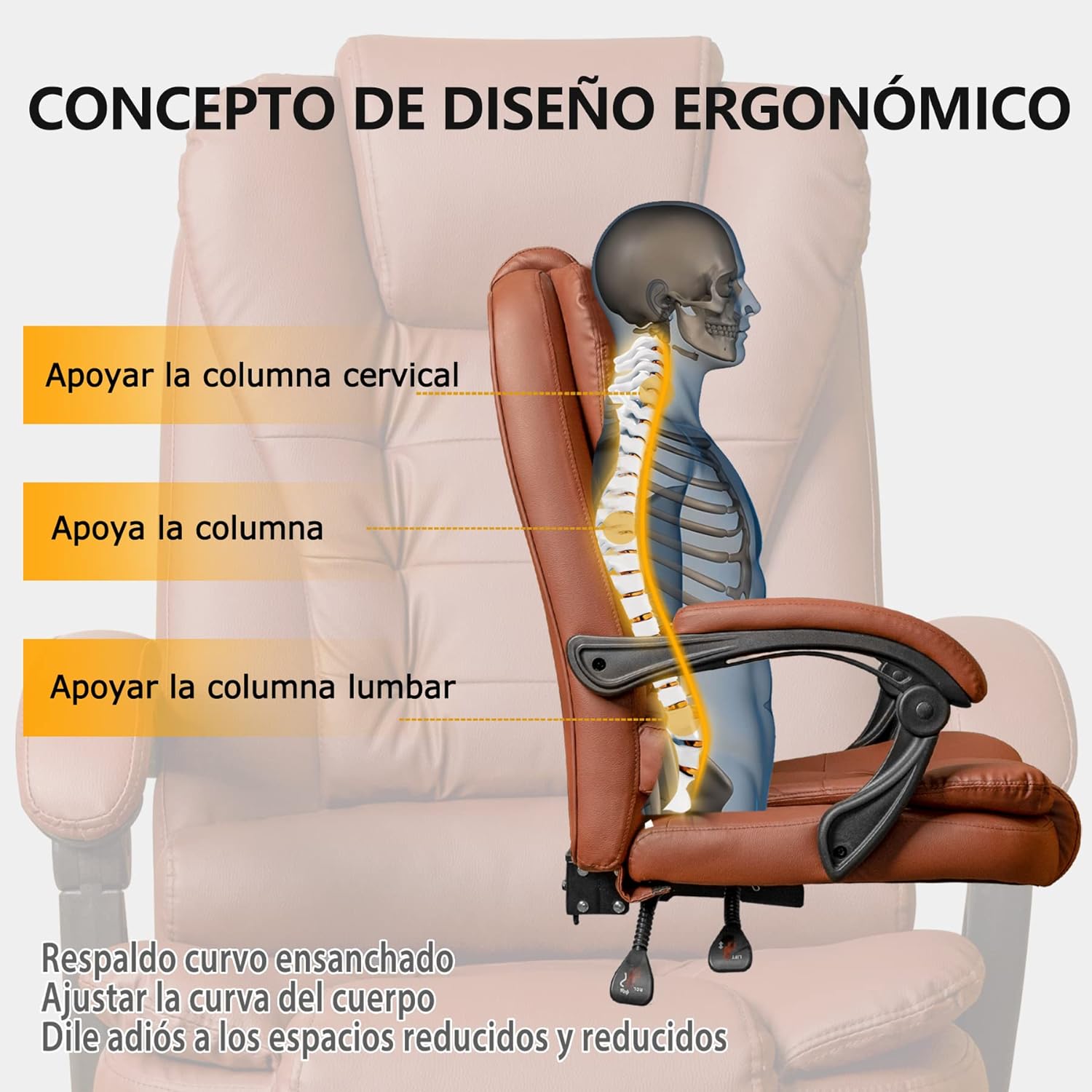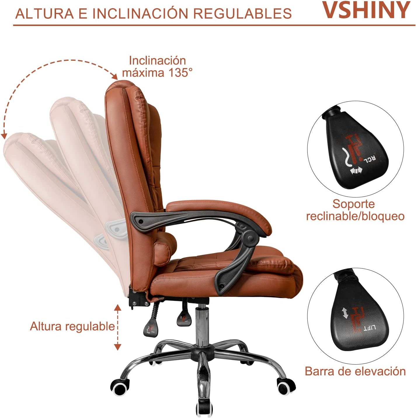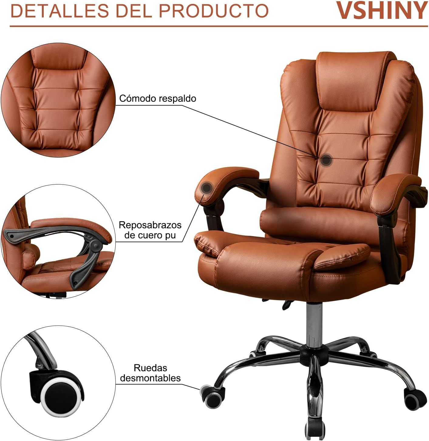 VSHINY Sillas de Oficina Ergonómicas,Silla de computadora,Silla Gamer,Silla de Ordenador,Cómodo sillón Giratorio de Oficina con cojín Acolchado.(Marrón)